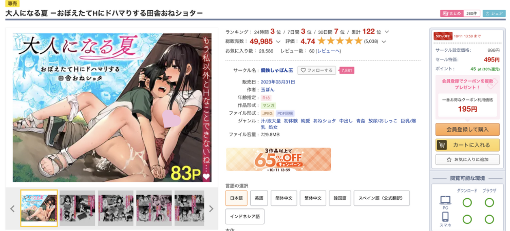 違法サイトに頼らずに安心してお得に読める公式サイトはDLsiteのみです。