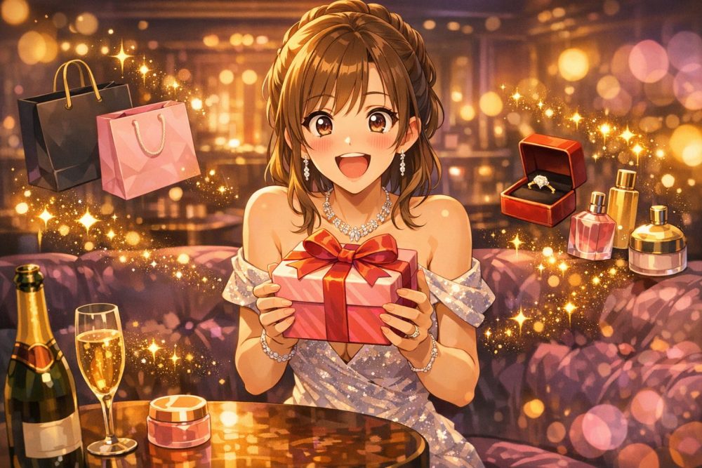 プレゼントをもらうことは「稼ぎが直接増える」というよりも「指名・来店頻度が上がる」という効果があります。プレゼントをした人は「あの子のために何かしてあげた」という感情が来店動機になります。